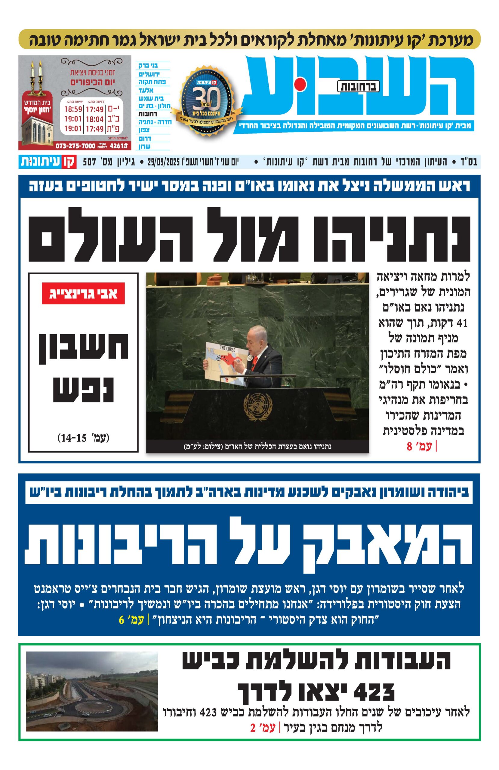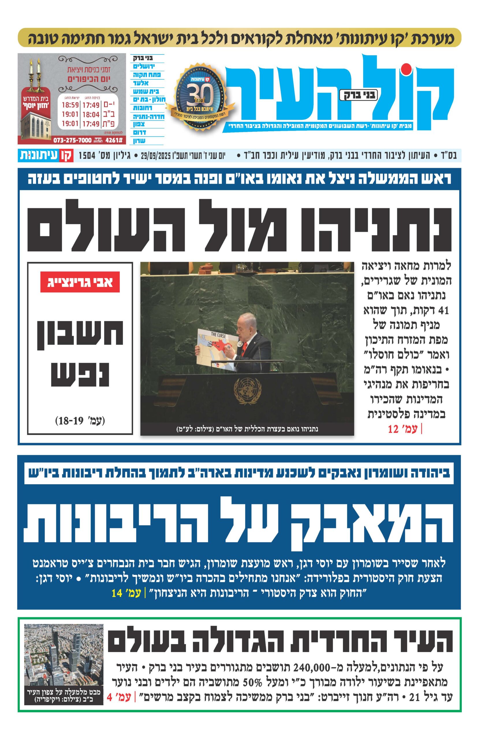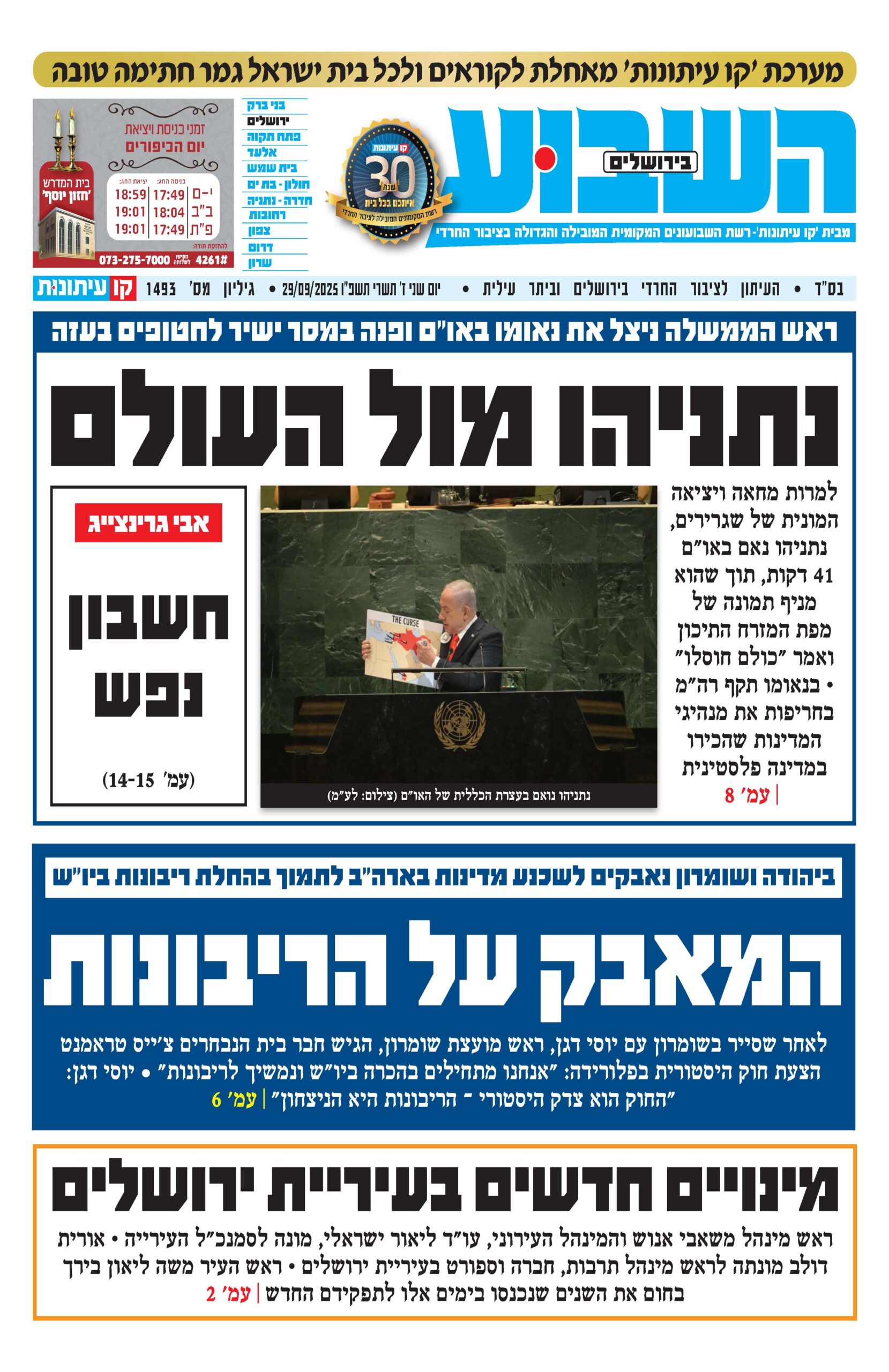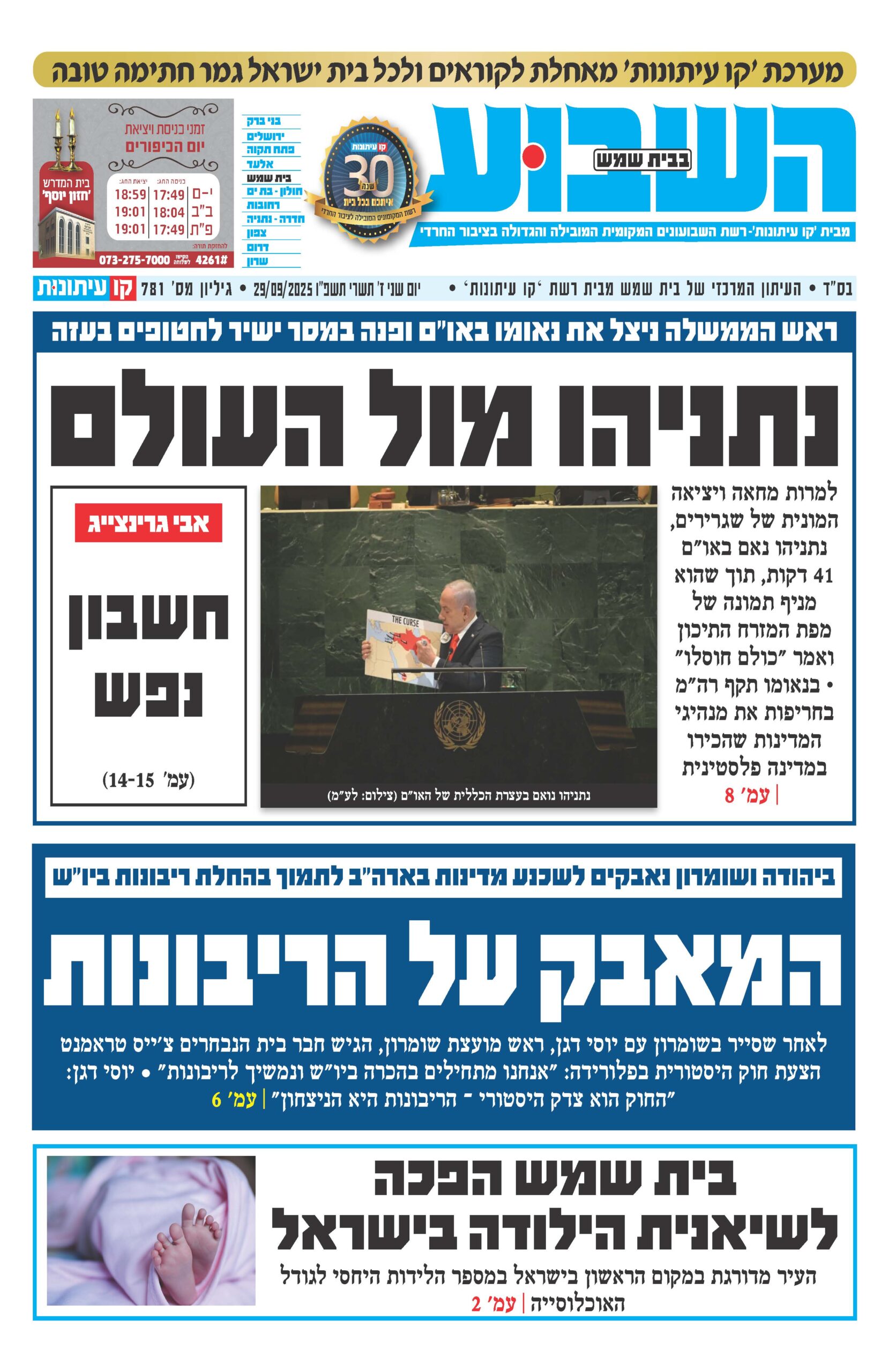 לוח מזל וברכה 30 מרץ השבוע בפתח תקוה 30 ספט השבוע בירושלים 30 ספט קול העיר בני ברק 30 ספט השבוע ברחובות 30 ספט השבוע בבית שמש 30 ספט חולון בת-ים וראשל"צ 30 ספט השבוע באלעד 30 ספט מוספים מיוחדים 9 אפר מוסף שבת 12 מרץ כל ישראל 12 מרץ ביזנס 4 מרץ